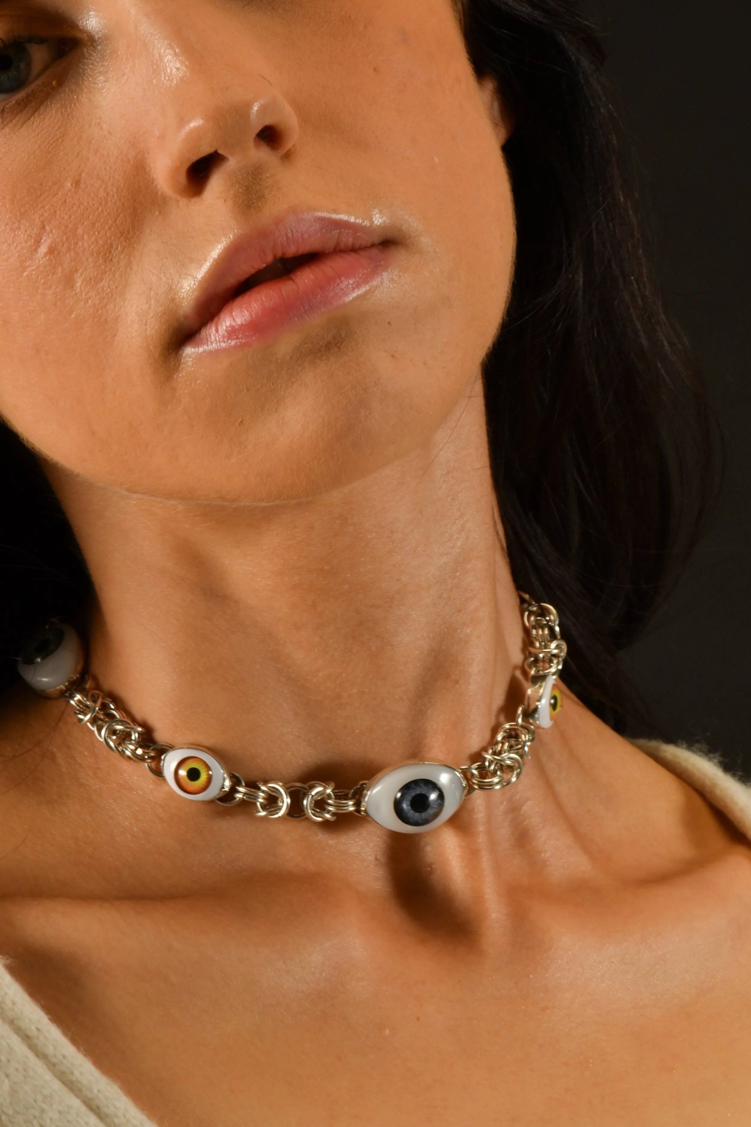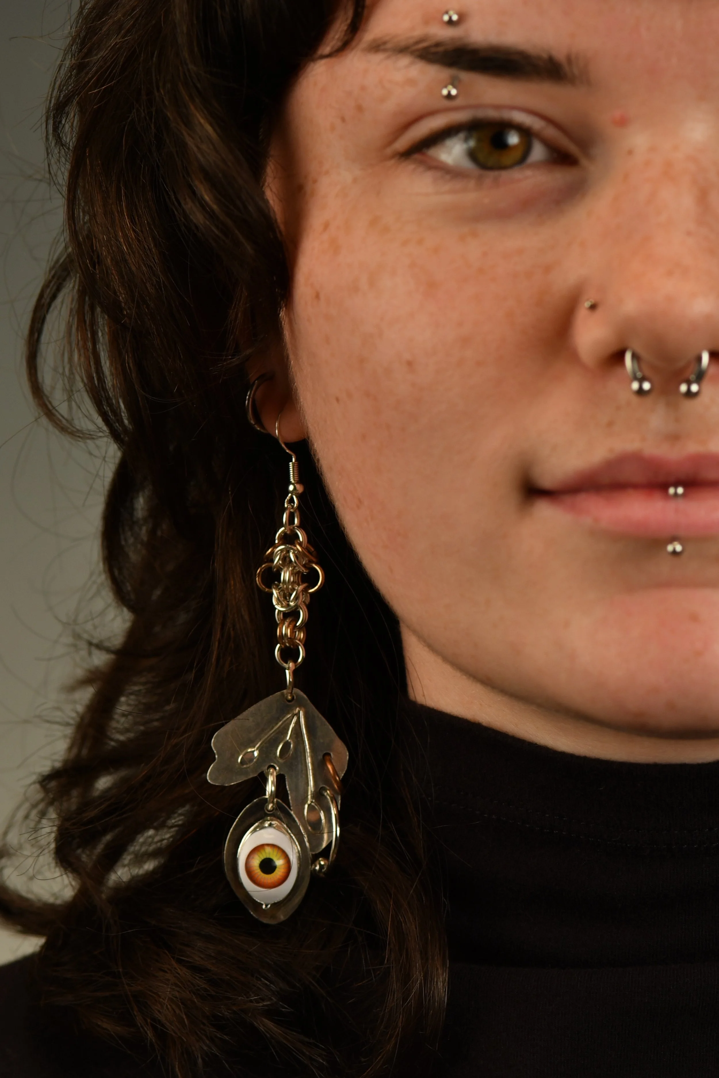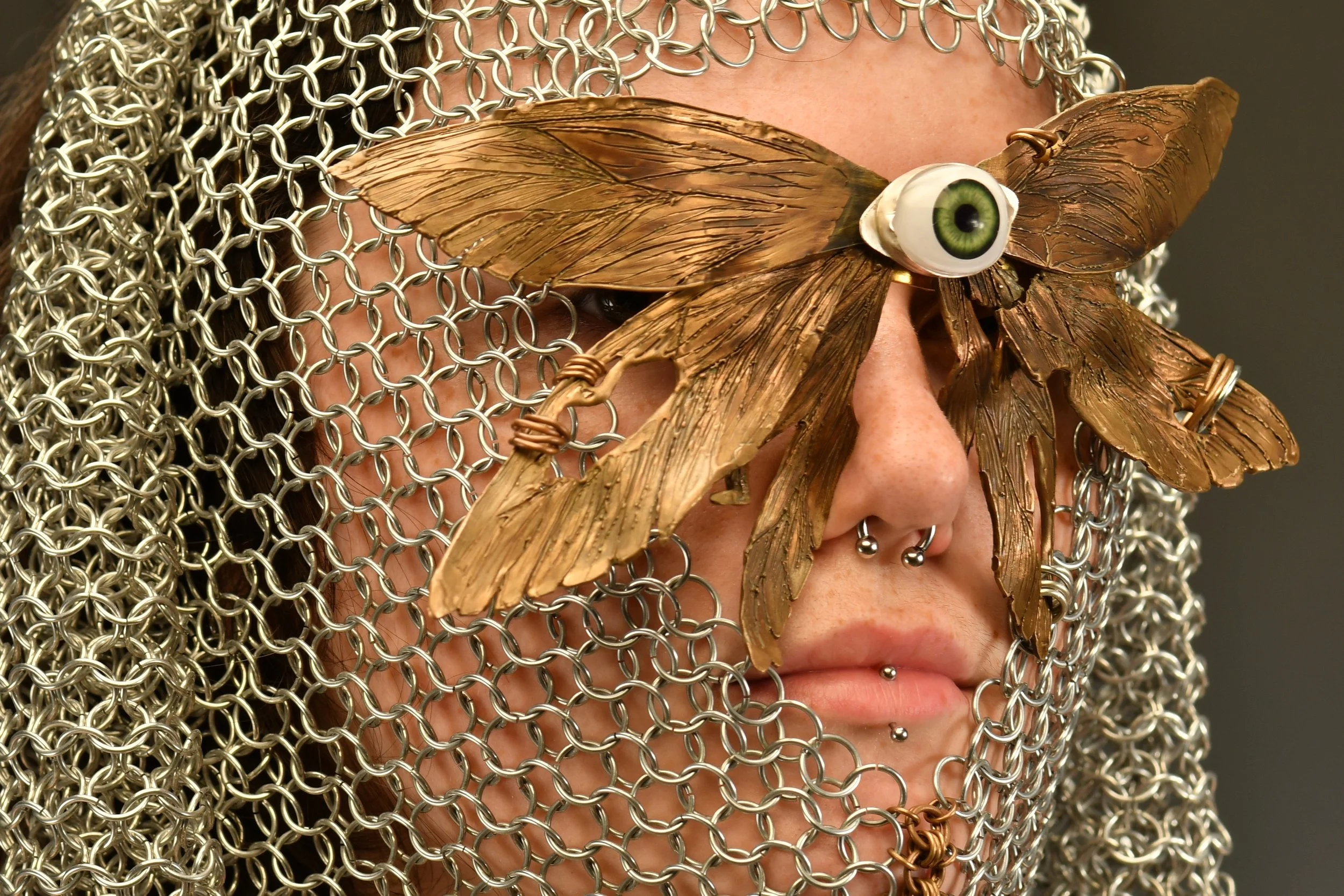 Armored and adorned, 2024-2025, bright aluminum, copper, brass, casted bronze, doll eye